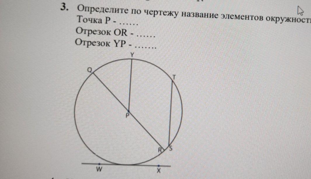 3. Определите по чертежу название элементов окружности, заполните таблицу.