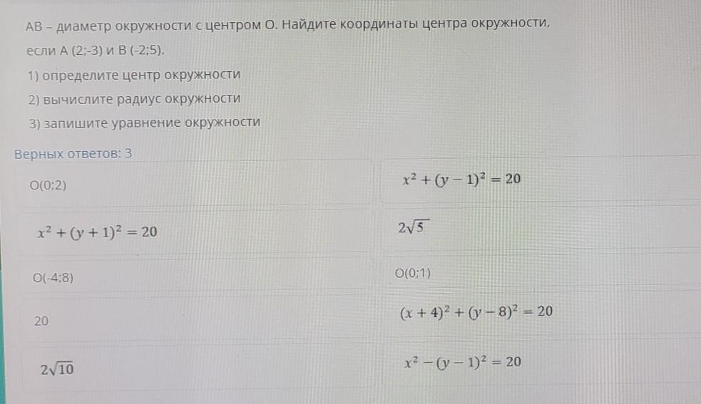 3) запишите уравнение окружности