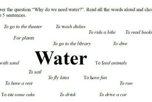 Task 1. Answer the question "Why do we need water?". Read all the words aloud and choose 5 to answer. Write 5 sentences.