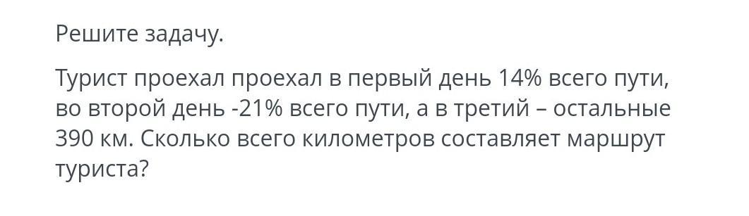 3) 390÷65×100= 600км - составляет маршрут туриста