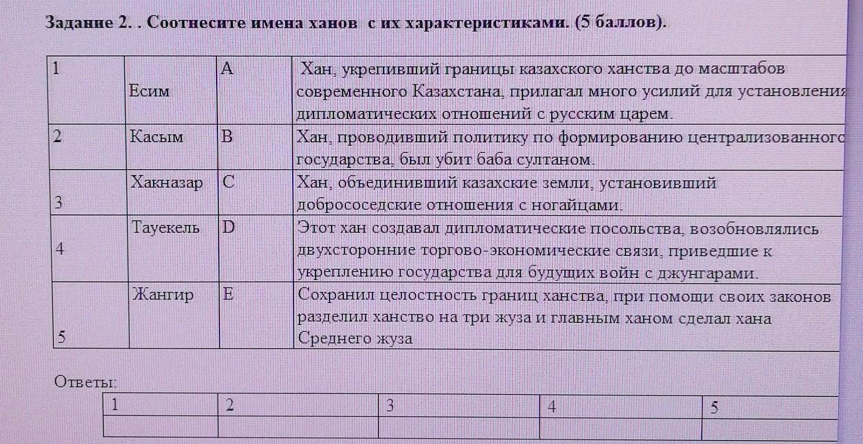 Задание 2... Соотнесите имена xанов с их характеристиками