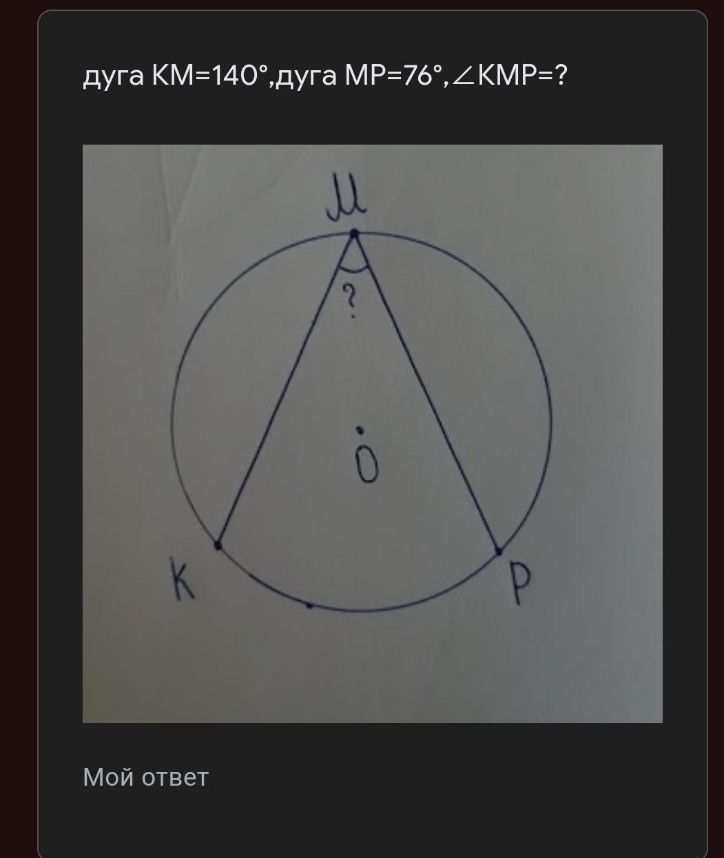 1) Дуга КР = 360° - 140° - 76° = 144°