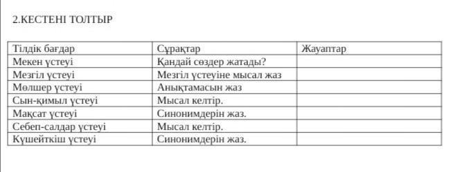 2.МЕЗГІЛ ҮСТЕУ:сұрақтары қашан?қашаннан?бүгін,кеше,ертең,ертелі-кеш,анда-санда; Ауылға анда-санда барып тұрамыз.Ертең мектепте семинар болады.