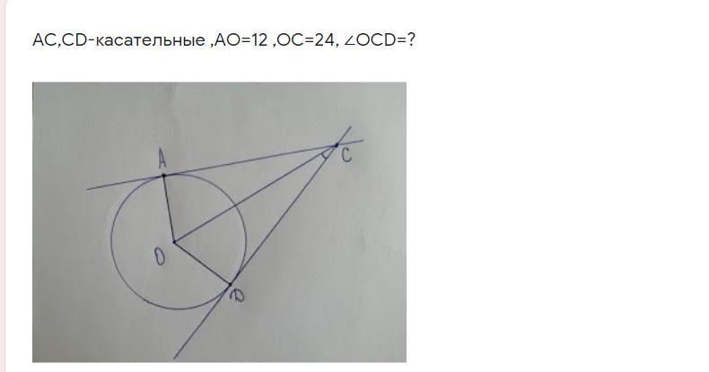 4)ВО_|_ ВС(радиус _|_ касательной) ,угол ОВС=90°