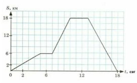 время отдыха-5 ч самая быстрая скорость путешественика- 3.6 км/ч сколько прошел путешественик между шестью и 12 часами- 12км сколько времени потратил на движение - 13 часов