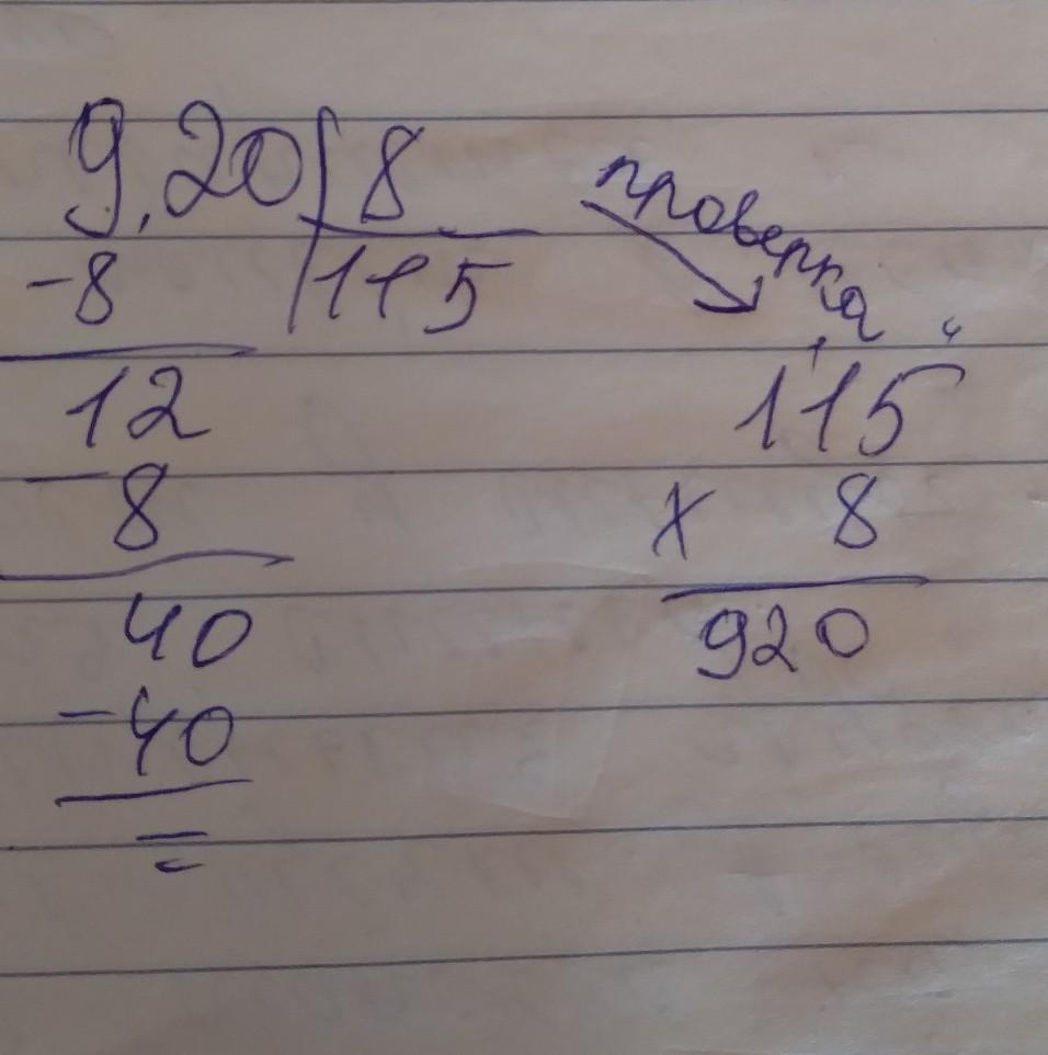 920:8=115 проверка: 115*8=920