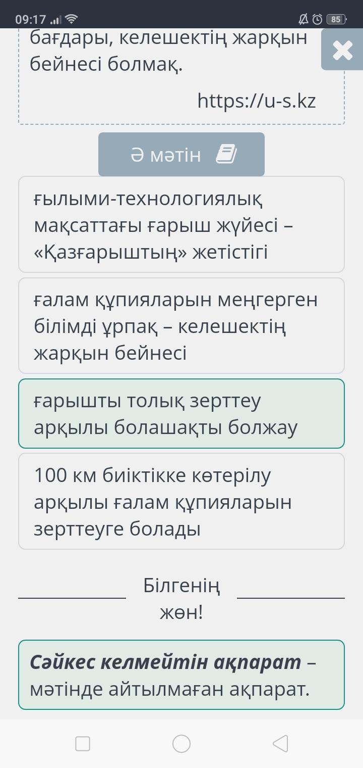 Ответ:ғарышты толық зерттеу арқылы болашақты болжау