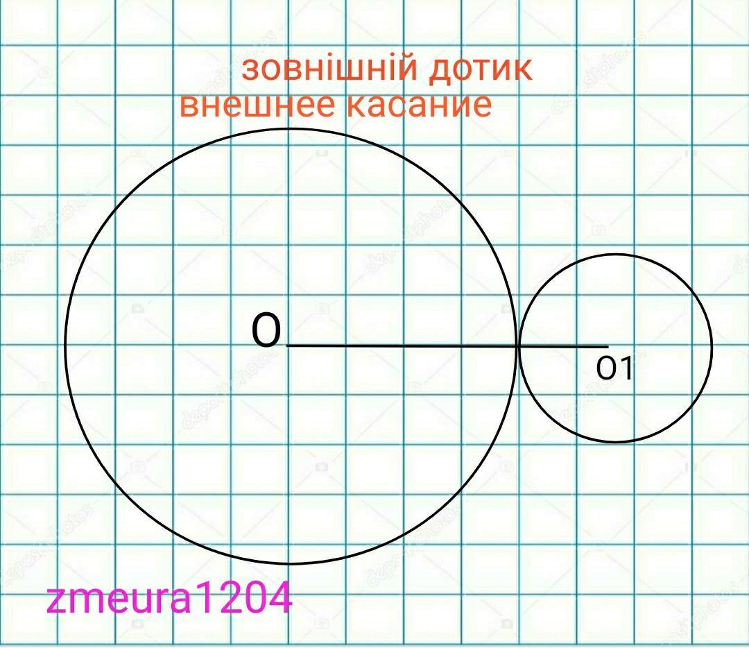Расстояние между центрами окружностей при внешнем касании-равно сумме двух радиусов.