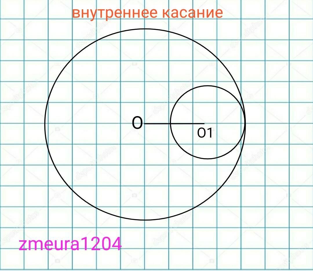 Расстояние между центрами окружностей при внутреннем касании-разница между радиусами окружностей