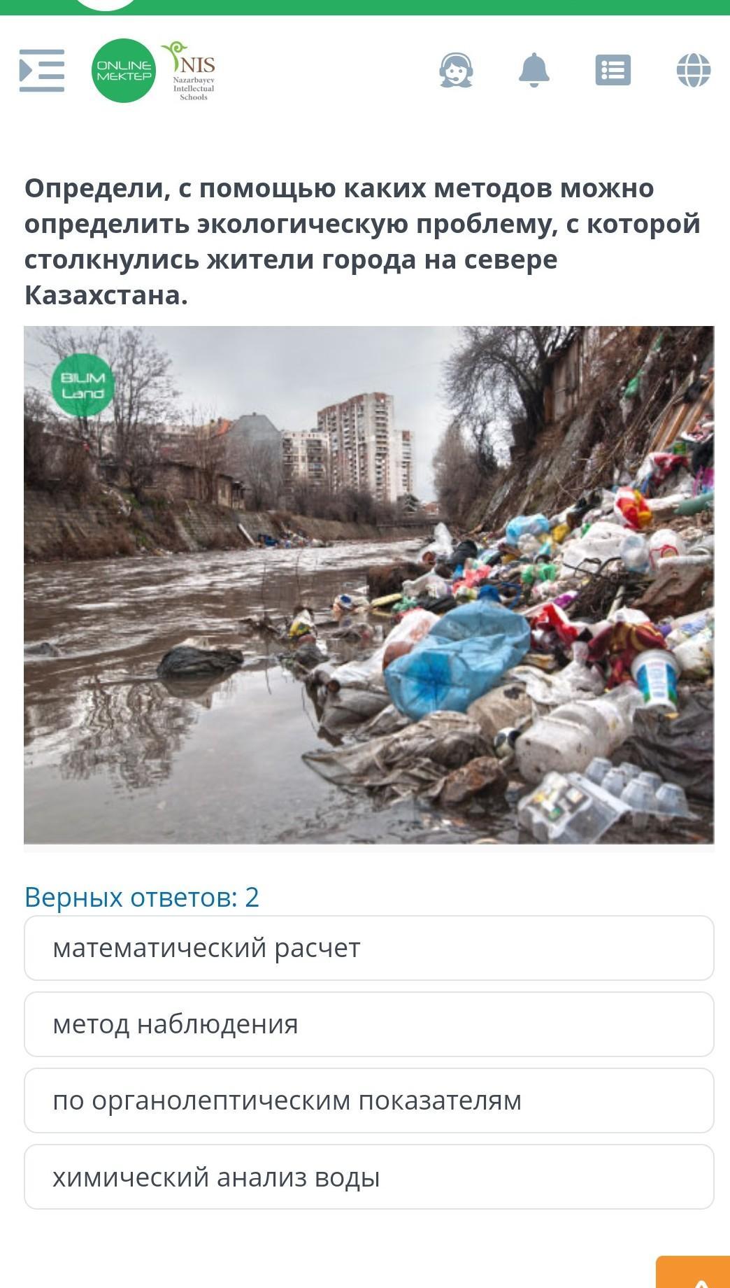 Определи, с помощью каких методов можно определить экологическую проблему, с которой столкнулись жители города на севере Казахстана.