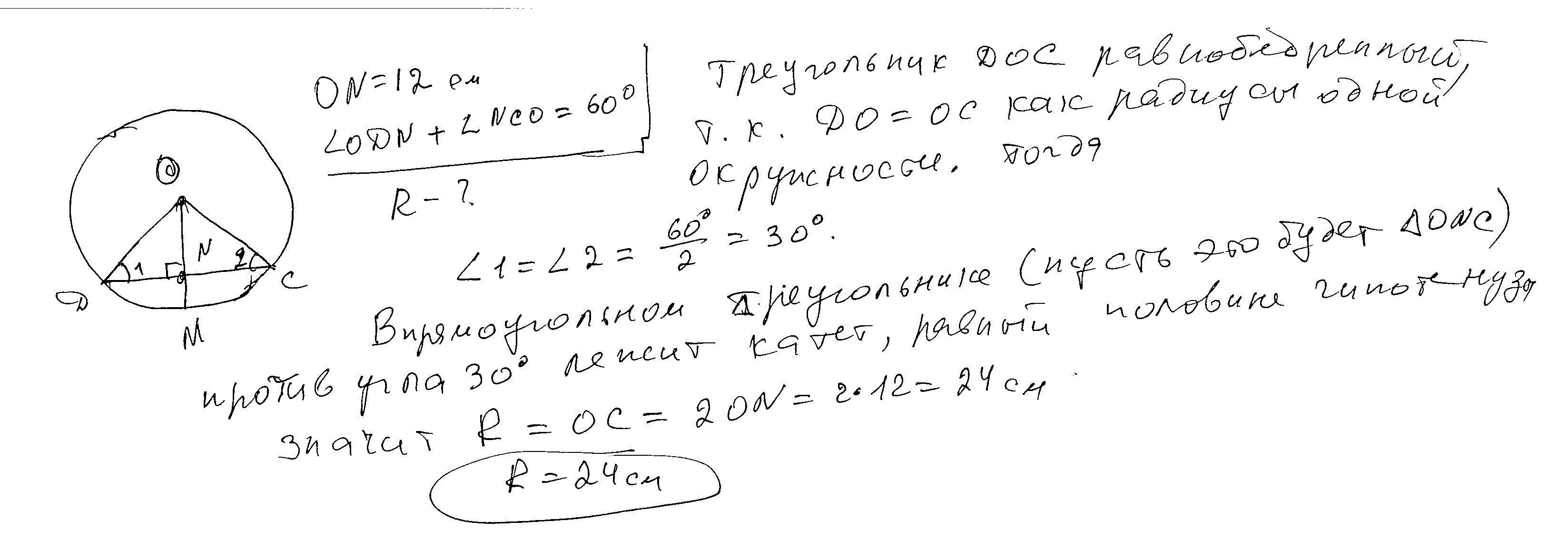 Длина перпендикуляра ON, подведенного к хорде DC данной окружности, равна 12 см.