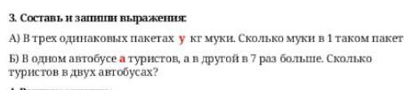 А) В трех одинаковых пакетах у кг муки. Сколько муки в 1 таком пакете?