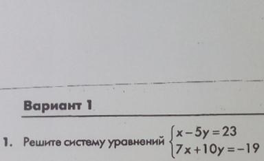 Пошаговое объяснение: из 1-го уравнения ⇒ х=5у+23, тогда