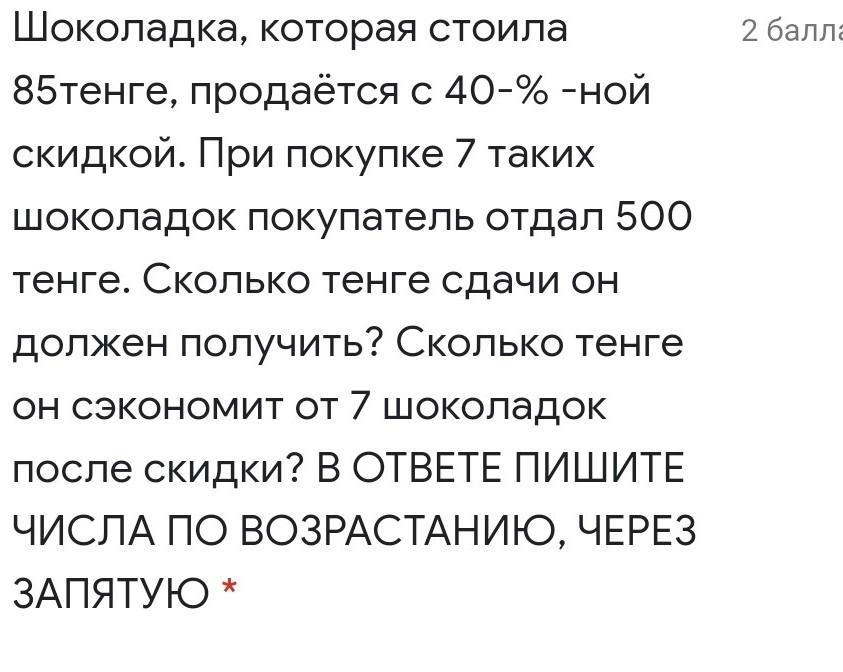 85•7=595(тенге) - стоимость 7 шоколадок без скидки