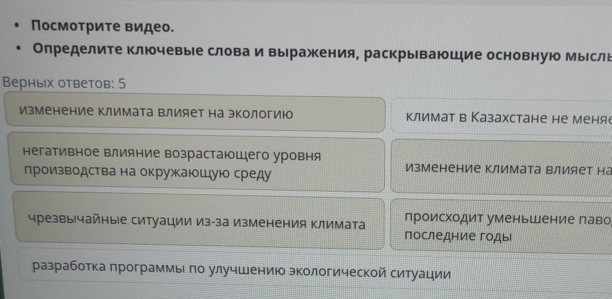 Определите ключевые слова и выражения, раскрывающие основную мысль видео.