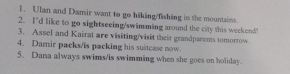 1. Ulan and Damir want to go hiking/fishing in the mountains.