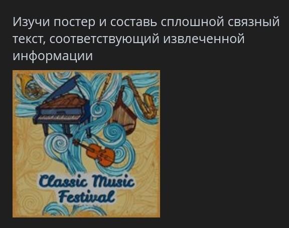 В скором времени будет фестиваль Классик музыка. Там будут игры на разных инструментах например скрипка саксафон пианино и тому подобное. Фестиваль будет очень воздушный и полн ярких музыкальных искр.
