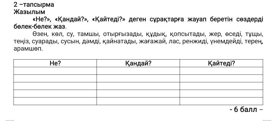 Не? : өзен,көл,су,тамшы, құдық,жер, теңіз,сусын,жағажай, арамшөп.