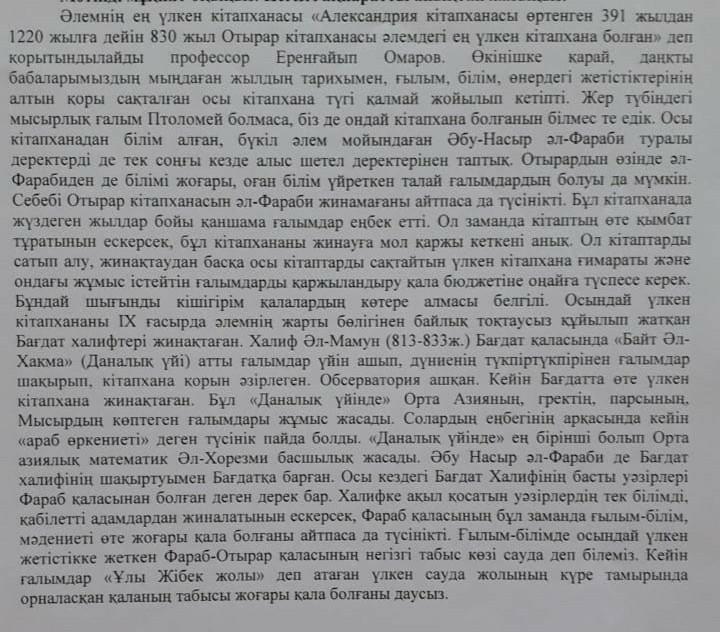 Мәтіннен зат есім, сын есім, устеулерді тауып, мағыналык турлерін аныкта. /10 балл/
