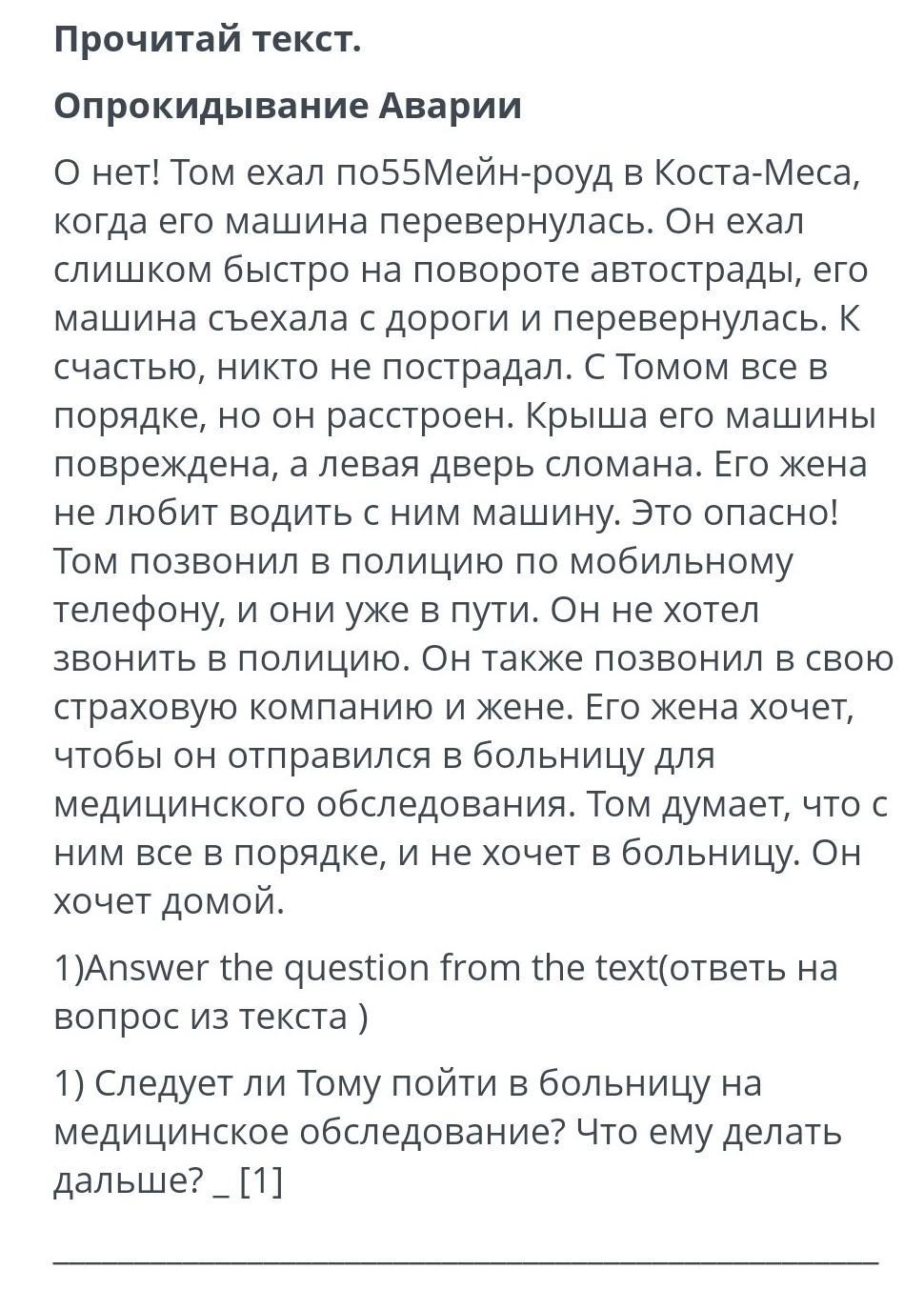 Тому надо пойди в больницу но Том же не может ходит Тому срочно надо позвонить в большицу