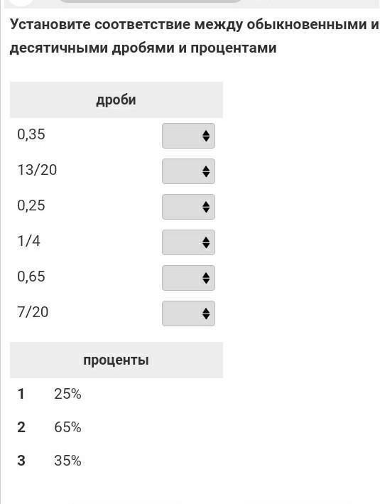 Ответ:1 25%=0,25 65%=0,65 35%=0,35
