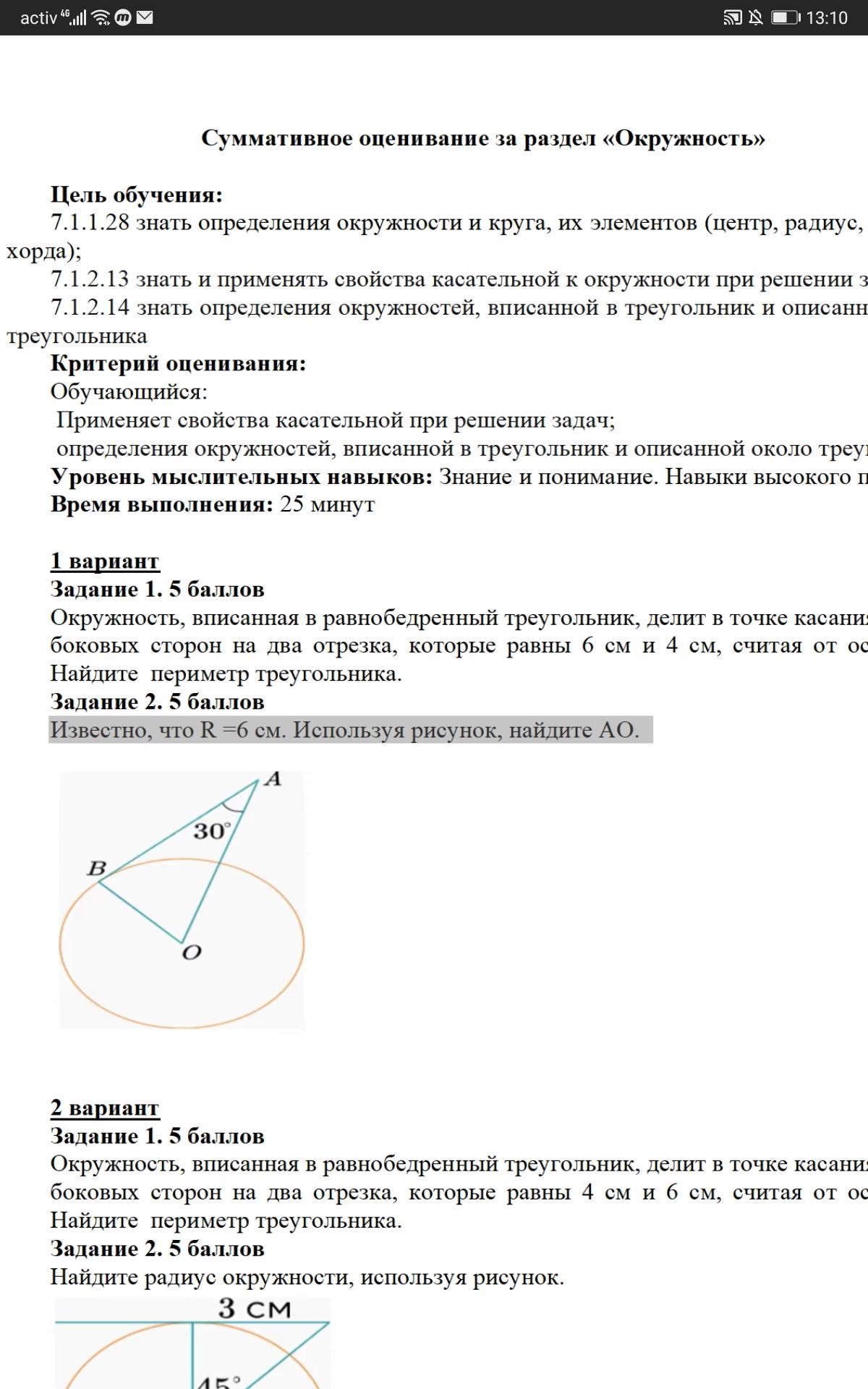 АО общая сторона и две стороны равные радиусу окружности