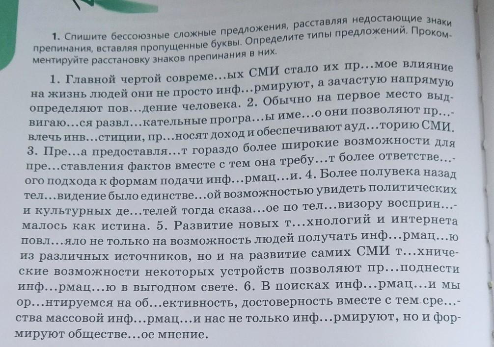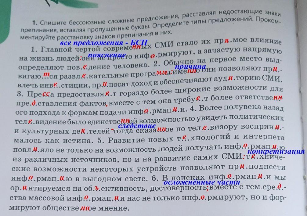 Спишите бессоюзные сложные предложения, расставляя недостающие знаки препинания, вставляя пропущенные буквы. Определите типы предложений. Проком ментируйте расстановку знаков препинания в них. (в конце в скобках нужно указать что это типо сложное, спп с прид )