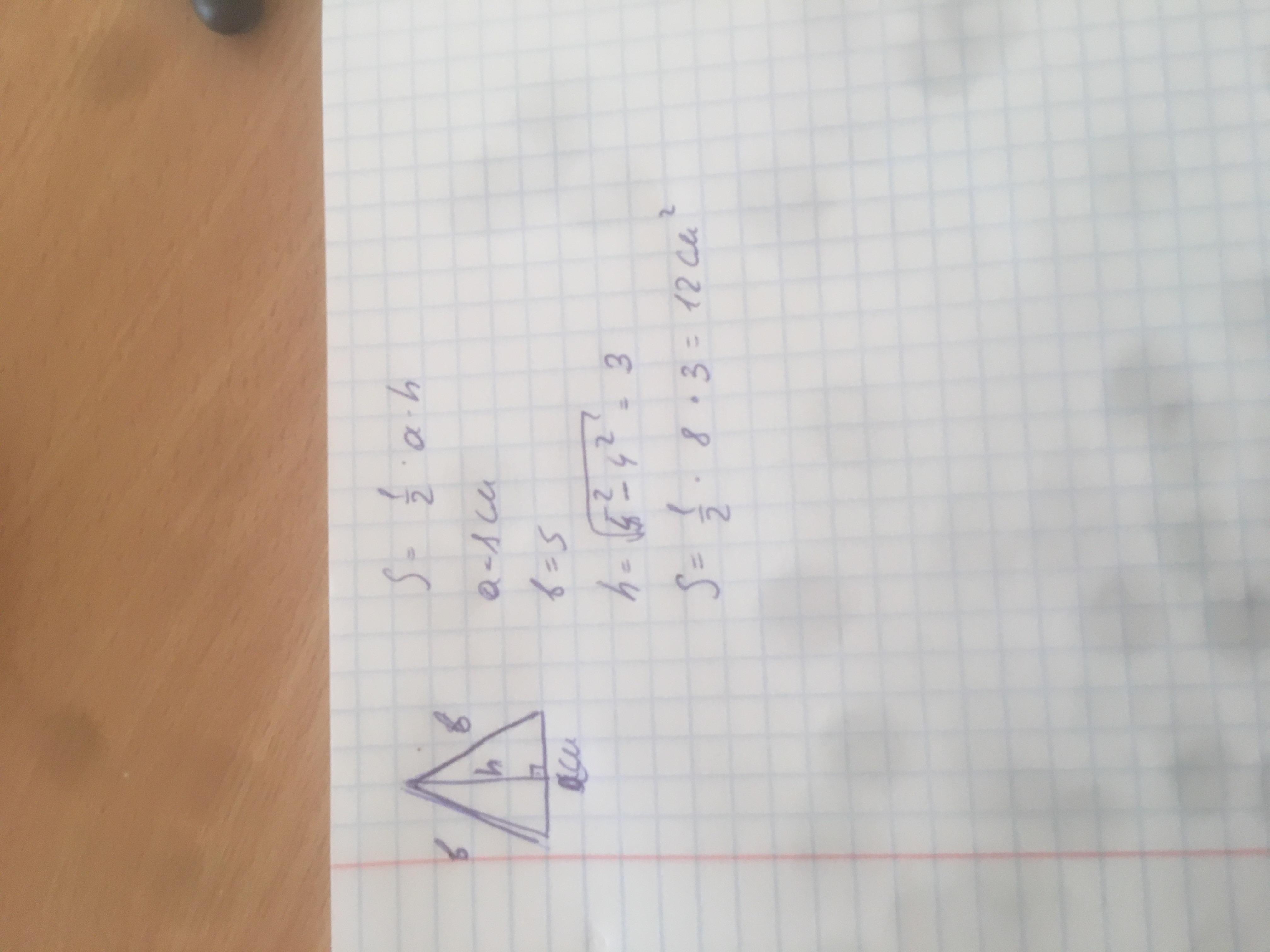 В своём решении я нашёл высоту по формуле Пифагора. Ну а дальше по формуле нахождения площади у треугольника