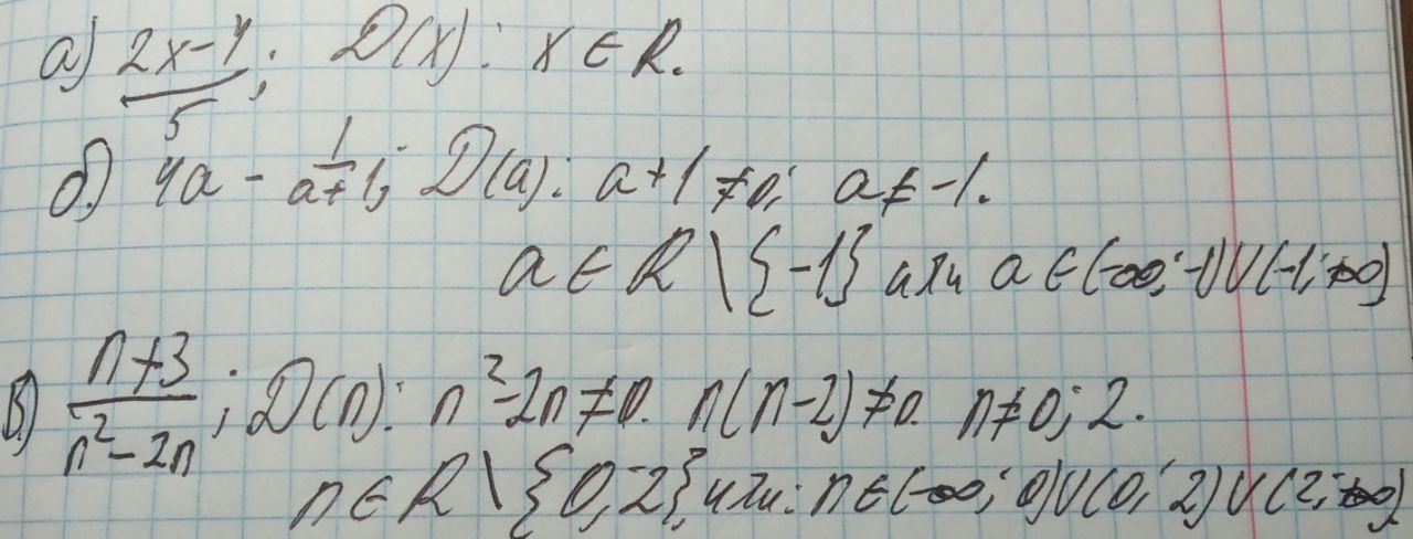 Следовательно получаем, что переменная n не может быть равна 2 и 0 или n€(-беск;0) и (0;2) и (2;+беск)