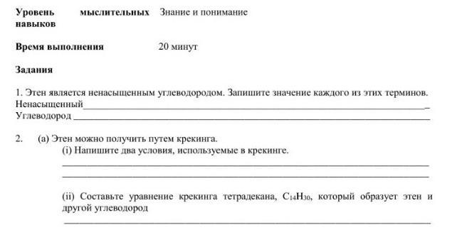 C14H30-->C2H4(этилен или этен. Алкен)+C12H26(додекан. Алкан)