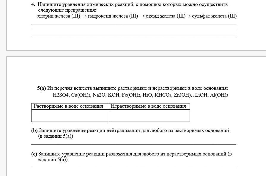 Нерастворимые :Zn(OH)2 ; Al(OH)3 ; Cu(OH)2 ; Fe(OH)2