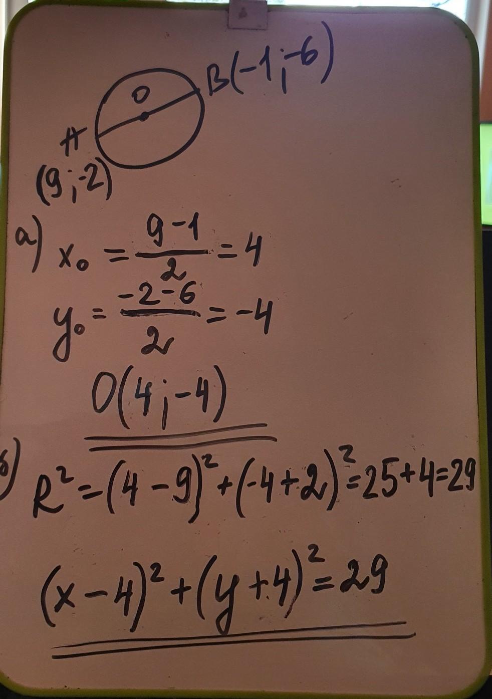 a)АВ – диаметр окружности с центром О. Найдите координаты центра окружности, если А (9; -2) и В(-1,-6)