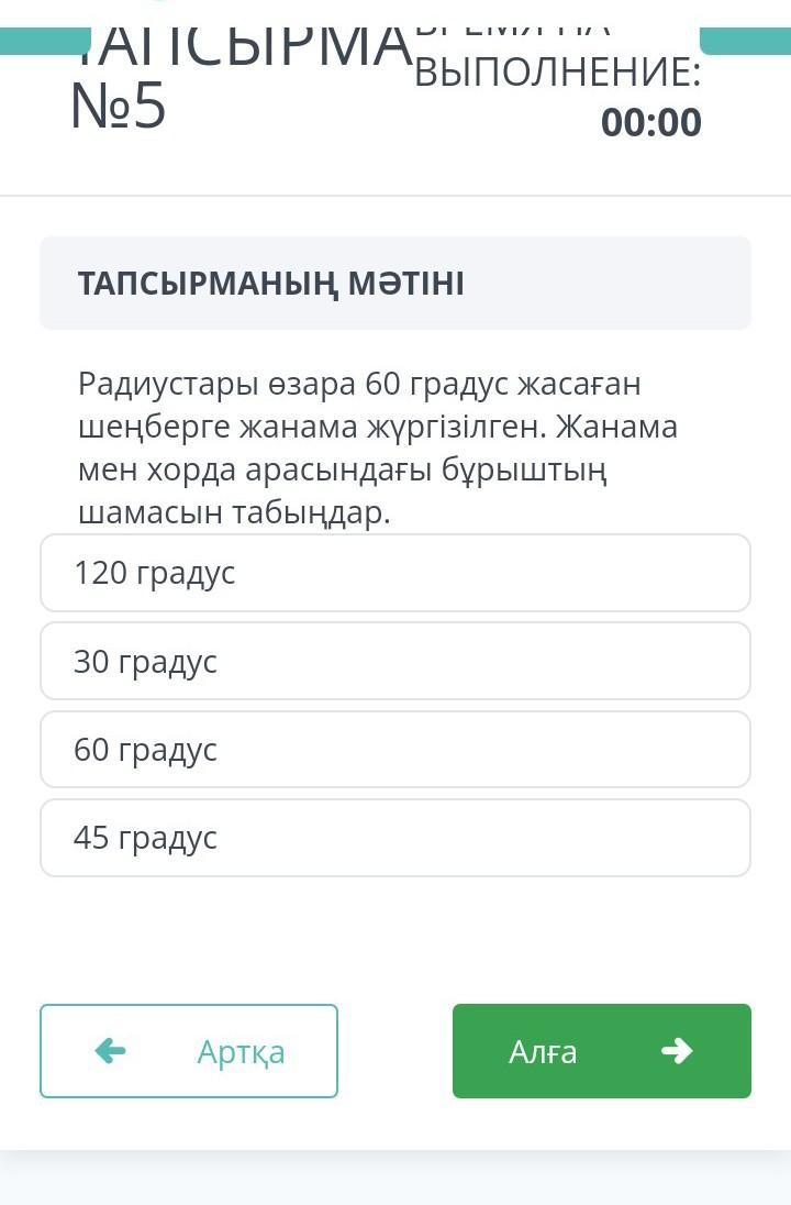 К окружности, радиусы которой выполнены взаимно на 60 градусов. найдите величину угла между косвенным и хором. 120 градусов 30 градусов 60 градусов 45 градусов