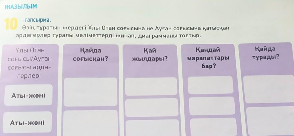 Өзің тұратын жердегі Ұлы Отан соғысына не Ауған соғысына қатысқан