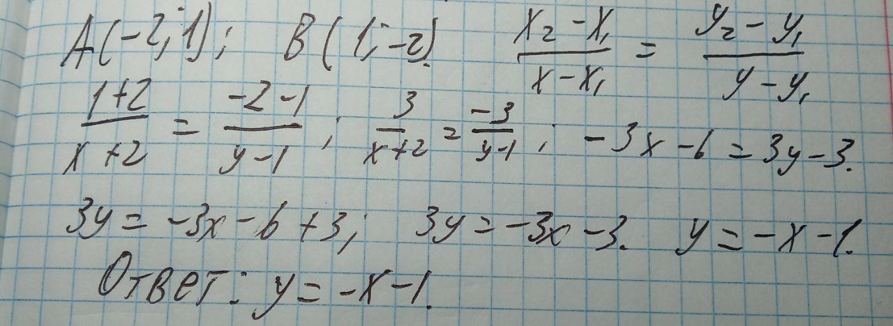Определите формулу функции, если график функции представляет собой прямую, проходящую через точки A (-2; 1) и B (1; -2)!
