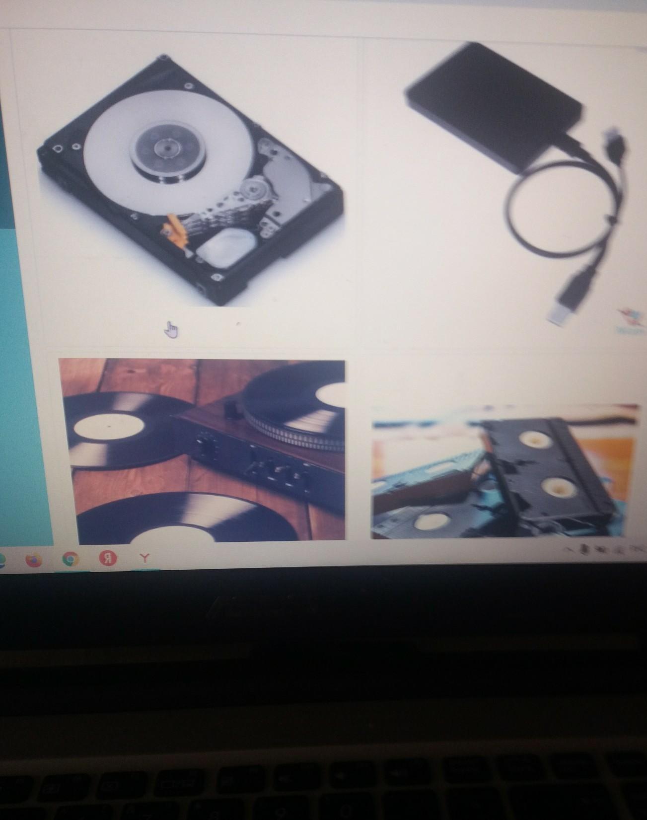 На первом фото (слева сверху) изображён жесткий диск. Это цифровой носитель информации. В наше время его используют во многих компьютерах.