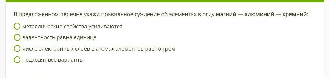 Объяснение: число электронных слоев в атомах равно № периода в которых находятся атомы, у нас Mg, AI, Si все находятся в 3 периоде.