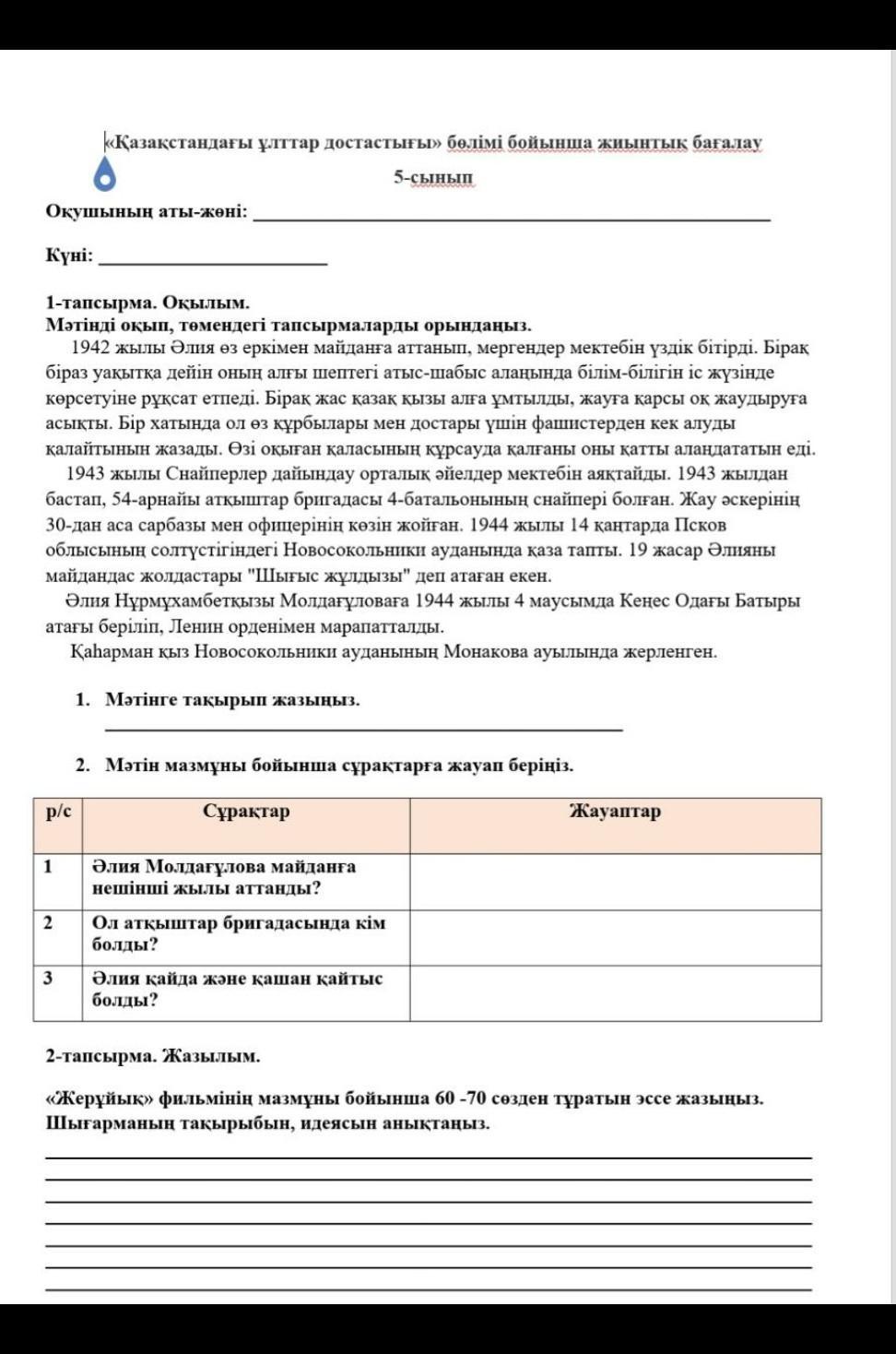Ответ:1. ержүрек жауынгер Әлия Молдағұлова