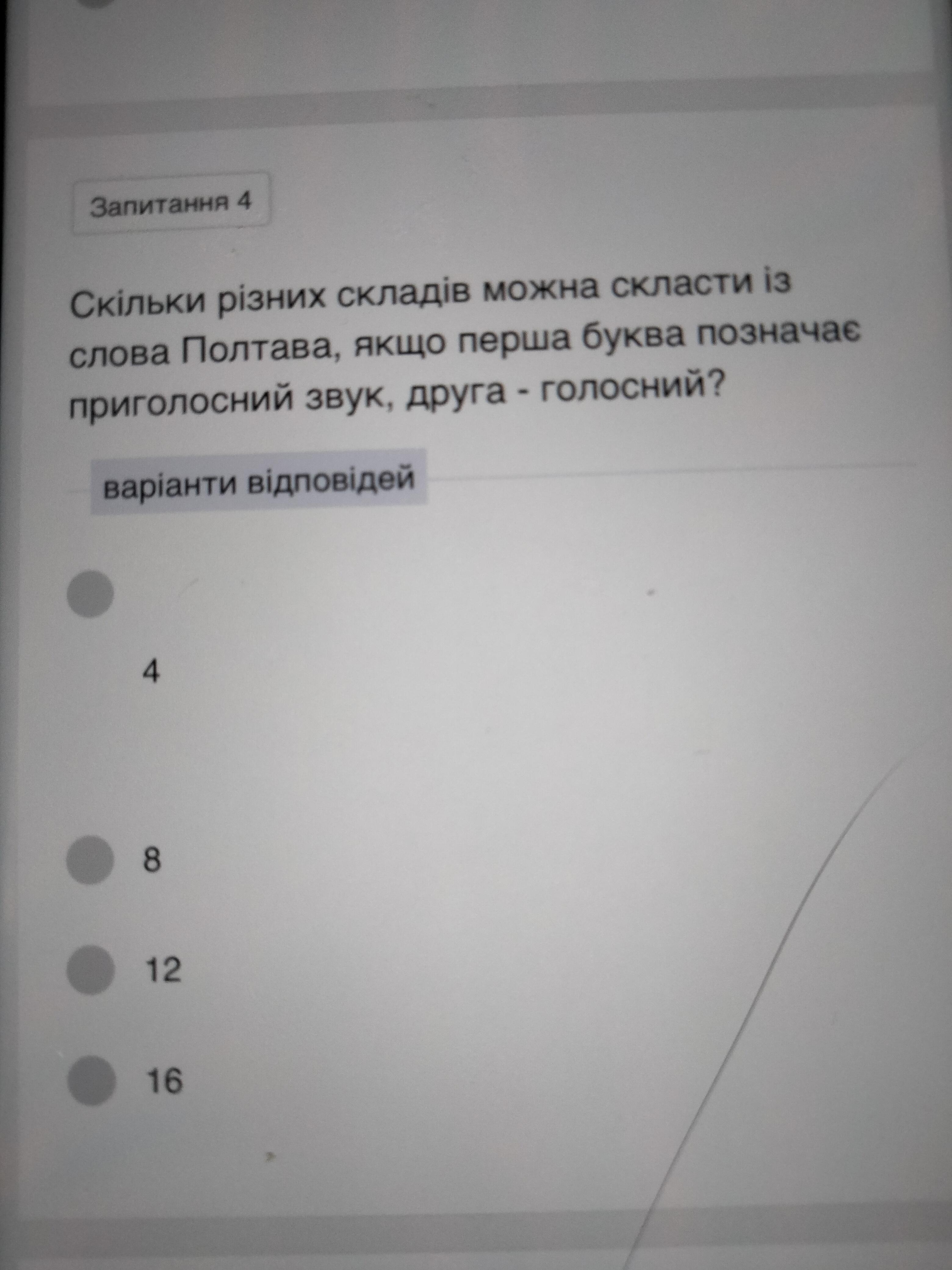 Скільки різних складів можна скласти із слова Полтава, якщо перша буква позначає приголосний звук, друга - голосний?