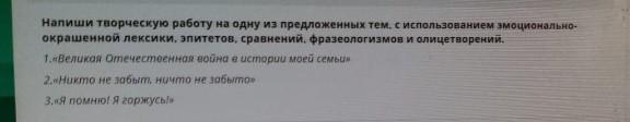 напешы творческую работу на одну предложенных тем. с использованием эмоцианално-окрашенную лексики,эпитетов,сравнений, фразеологизмов и олецитворений
