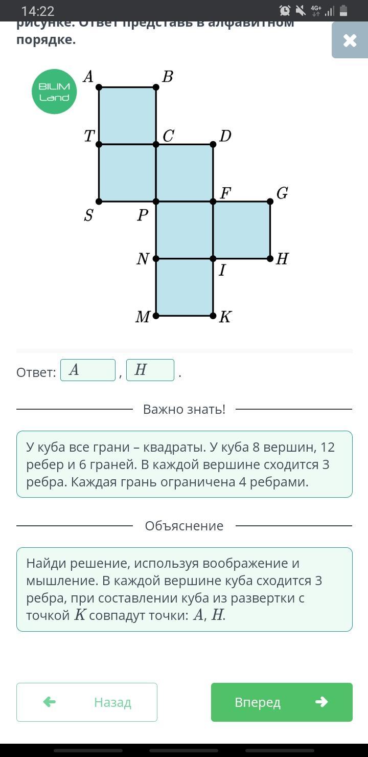 определи точки, которые совпадут с точкой К при составлении куба из развертки, данной на рисунке.