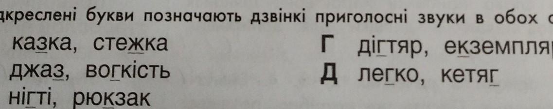 3. Підкреслені букви позначають дзвінкі приголосні звуки в обох словах варіанта