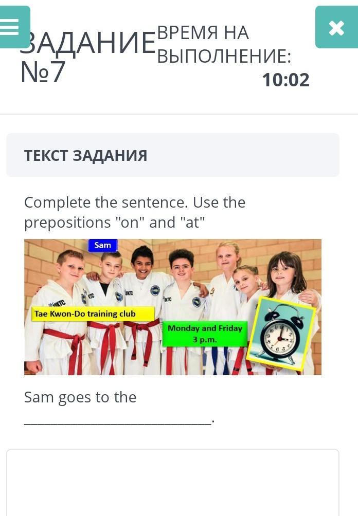 Sam goes to the Tae Kwon Do traning club at 3 p/m