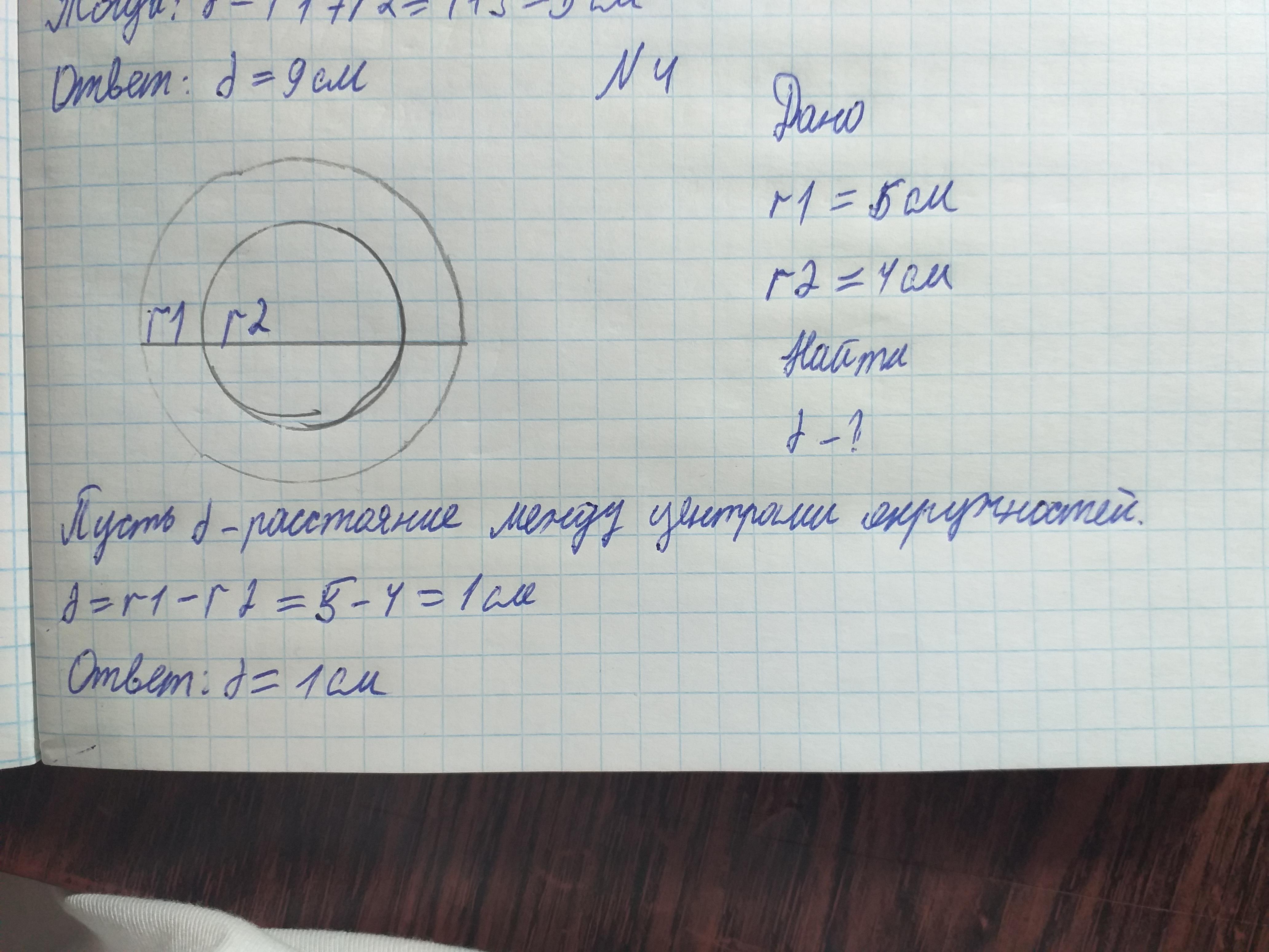 Окружности,радиусы которых 5см и 4см,касаются внутренним образом.Найдите расстояние между их центрами