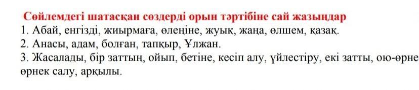 Сөйлемдегі шатасқан сөздерді орын тәртібіне сай жазыңдар