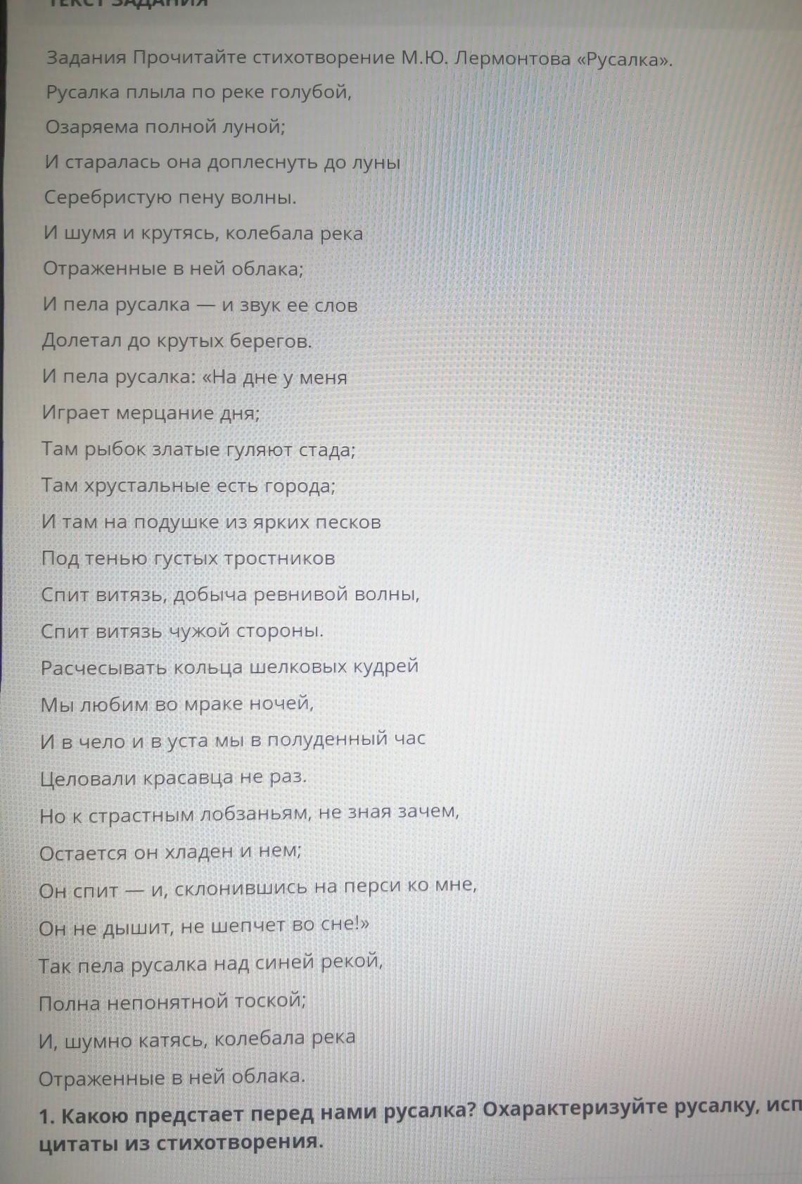 1. Какою предстает перед нами русалка? Qхарактеризуйте русалку, используя