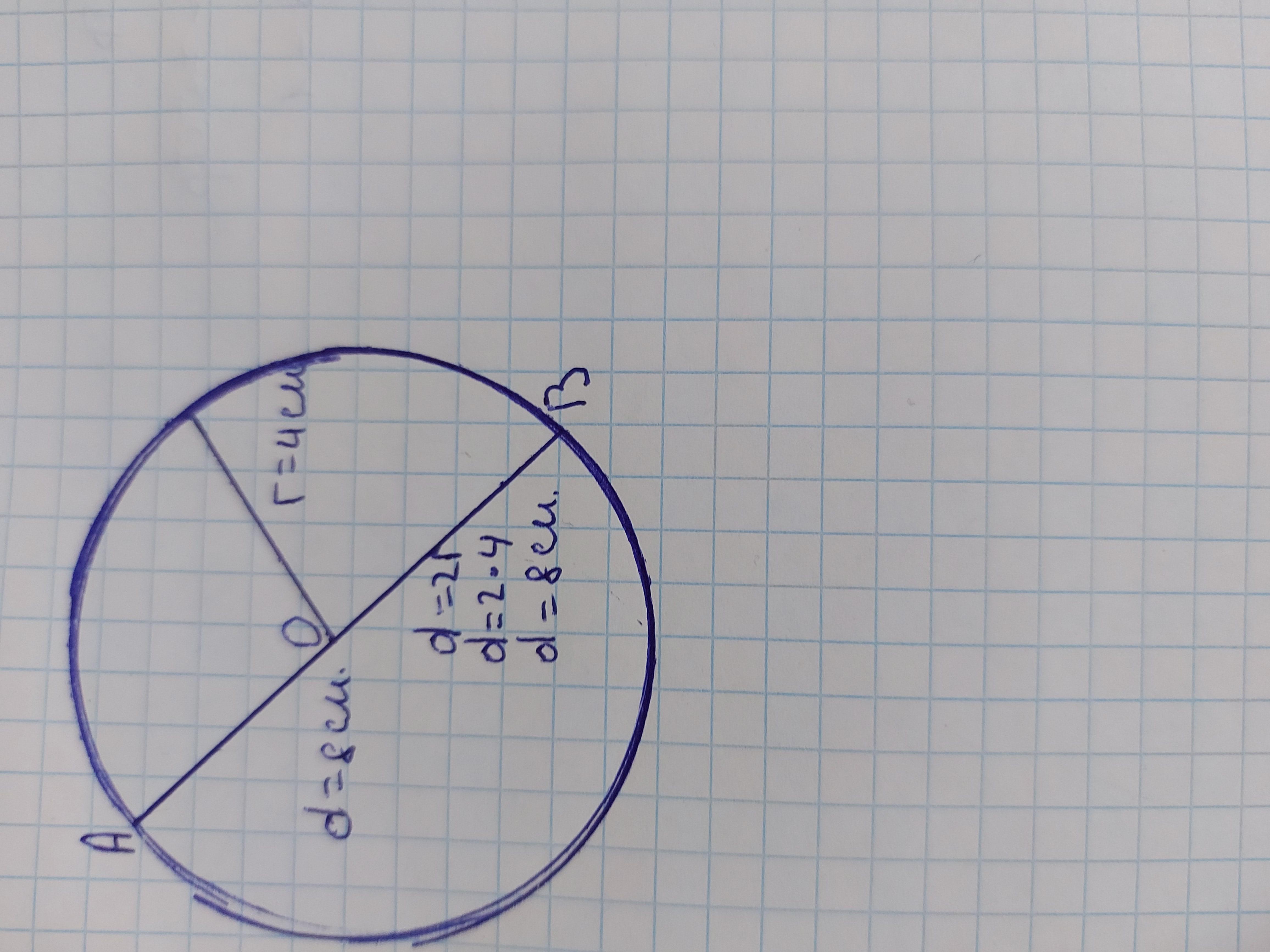 Диаметр окружности (d) - это отрезок, проходящий через центр О окружности и соединяющий любые две точки, лежащие на этой окружности.