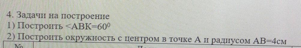 2) Построить окружность с центром в точке Ан радиусом AB=4см