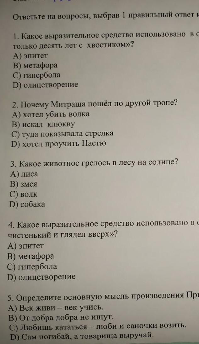 1)B; 2)C; 3)D; 4)A; 5)D;
