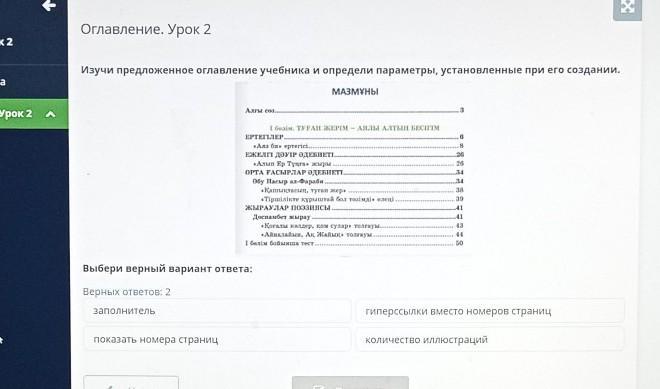 Изучи предложенное оглавление учебника и определи параметры, установленные при его создании
